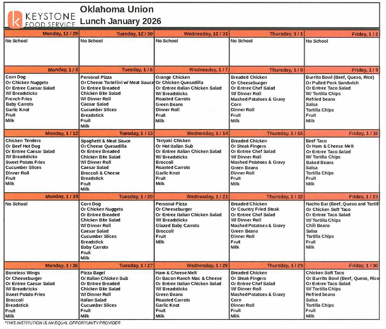 Lunch menus for both campuses (updated 01.12.26)