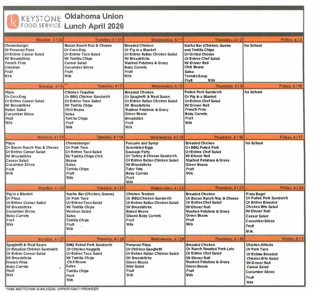 OKU Menus for March - Updated 04.13.26)